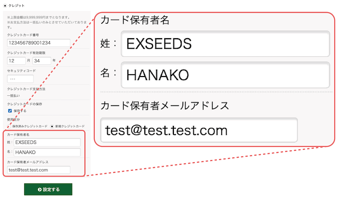 カード保有者名&メールアドレスのご入力