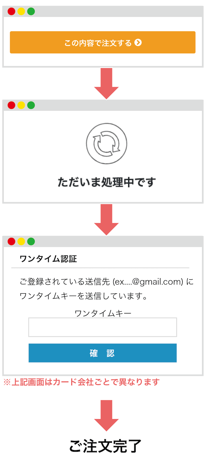 ※お使いのカード会社がリスクが高い決済と判断した場合のみとなります。